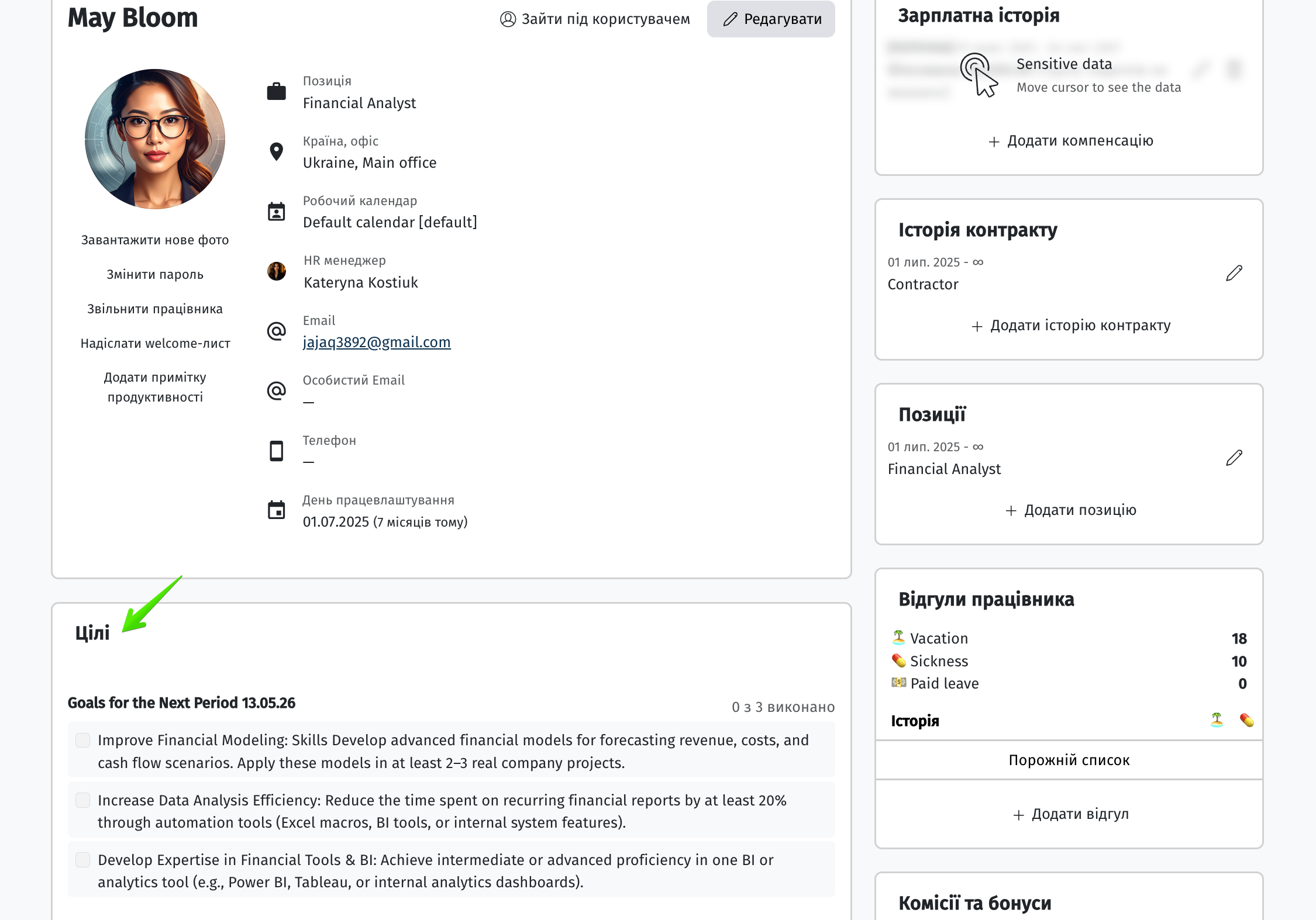 Обравши опцію Редагування, можна внести додаткові деталі, зазначити цілі на випробувальний термін та іншу важливу інформацію.