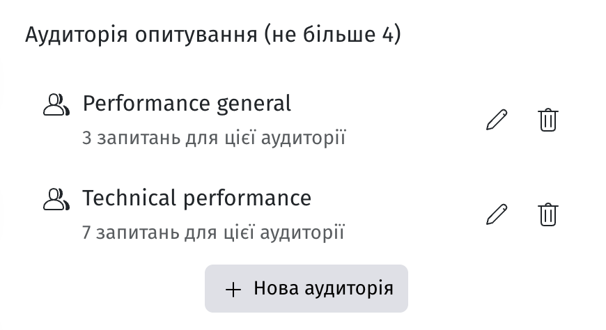 Під час налаштування опитування ви можете додати аудиторії, для яких будуть призначені окремі набори питань з анкети.