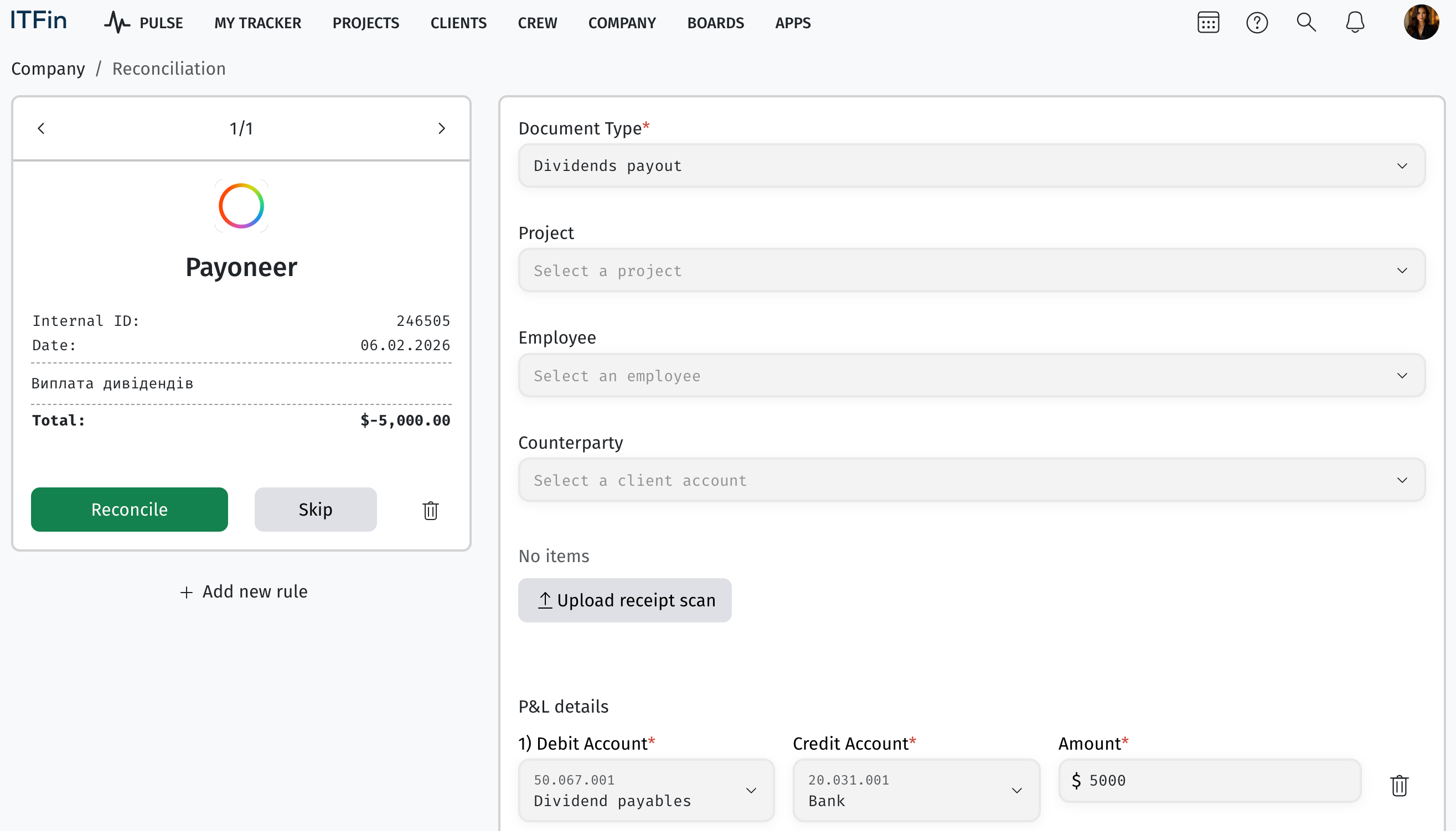 Дивіденди не відображаються у звіті P&L (Доходи та Витрати).
